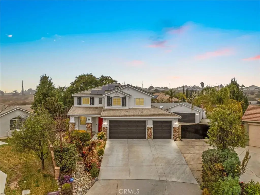 Welcome to this beautifully renovated 6-bedroom, 3-bathroom home in the heart of Gavilan Hills, offering privacy, space, and modern luxury on half an acre with no back neighbors. Located in a quiet cul-de-sac, this home is a true pride of ownership property, featuring exquisite marble and tile finishes throughout. Inside, youll find a secondary master suite downstairs, perfect for multi-generational living or guest accommodations. The open-concept layout seamlessly connects the living spaces, highlighting the homes meticulous upgrades and high-end finishes. Step outside to an expansive backyard, complete with two separate structures, ideal for an art studio, home office, or creative workspace, each with hooked-up AC for year-round comfort. New AC/ heat pumps installed in 2022. The large shop provides endless possibilitiesit can be converted into an ADU for rental income or used as an additional garage or workspace .This home is also energy-efficient, equipped with solar panels to help lower utility costs installed in 2022. With everything redone and upgraded, this is truly a move-in-ready dream home offering modern amenities, privacy, and unmatched versatility. Dont miss out!