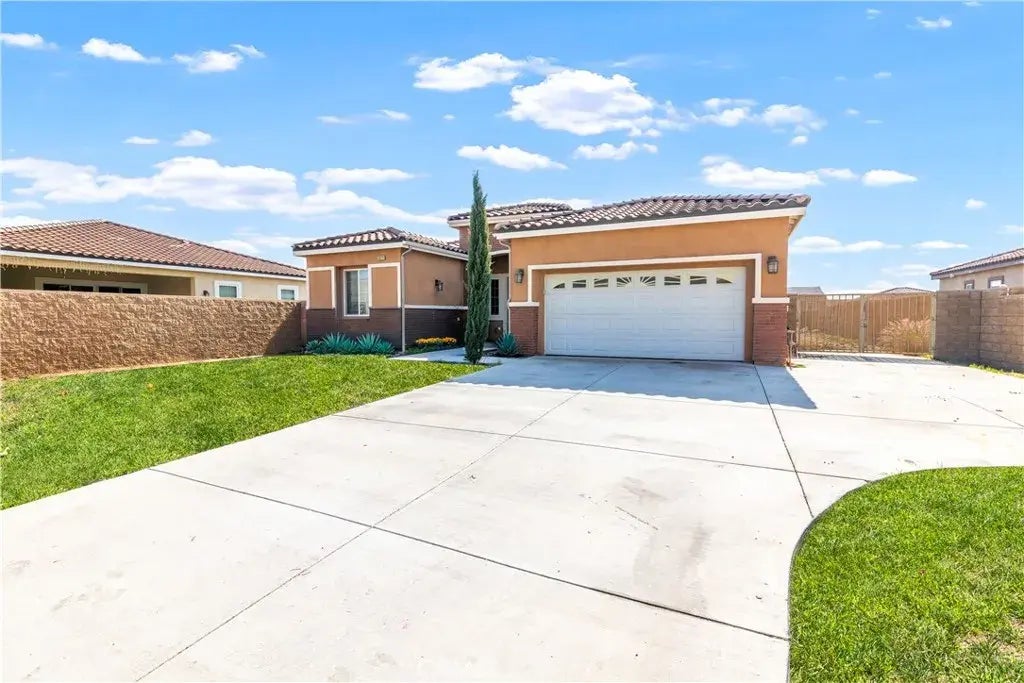 Welcome to this beautiful single-story home with tall ceilings and an open floor plan thats perfect for entertaining! With 4 bedrooms and 4 bathrooms, there is plenty of space for everyone to spread out and feel at home. The kitchen is a dream, featuring white cabinetry, gray quartz countertops, and a walk-in pantry for extra storage. It flows right into the living and dining areas, making it easy to host gatherings or just enjoy everyday life. Step outside to the huge California room with an outdoor fireplace, which is a great spot to relax year-round. The backyard is a blank slate, ready for you to design your dream outdoor space. Plus, there is RV parking on the right side of the home. This home has so much to offer, come check it out!