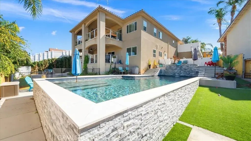 This stunning water view home in Canyon Lake, California, is the perfect blend of luxury and functionality, offering an exceptional living experience. Recently built with modern design elements throughout, the home features a spacious open floor plan that flows seamlessly from room to room. The heart of the home is its gourmet kitchen, complete with custom cabinetry, top-of-the-line appliances, and an expansive island ideal for cooking and entertaining.The home boasts six bedrooms and four bathrooms, including a large ADU (Accessory Dwelling Unit) complete with its own kitchenette, living room, and bedroom/bath perfect for multigenerational living or guests. This ADU has rented as much as 2,000.00 per month which is great rental income. The impressive 13-foot sliding glass door leads to an expansive patio area, offering breathtaking water views and a private oasis for relaxation. Step outside to a sprawling backyard, complete with a massive pool perfect for swimming laps and featuring LED lighting that creates a stunning ambiance in the evenings. The attached spa is ideal for unwinding, and the custom fire pit adds to the outdoor living experience.This home is also designed with sustainability in mind, with 41 solar panels, three tankless water heaters, and a Halo water softener, providing both energy efficiency and convenience. The large backyard ensures plenty of room for outdoor activities, making it an entertainers dream. Don't miss this incredible opportunity to own a beautiful, energy-efficient, multi-generational home with unrivaled views and luxury living in Canyo