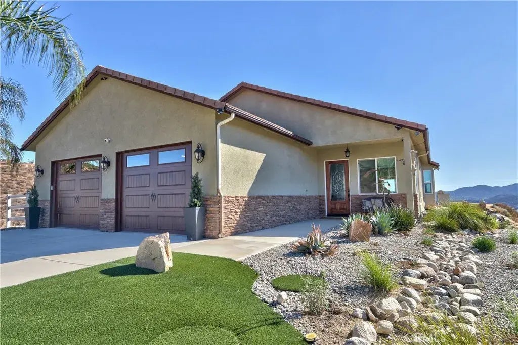 Breathtaking Views Await on this rare to find property! Step into this meticulously upgraded, turnkey single-story home with 20 PAID FOR SOLAR PANELS, built in 2016, nestled on over 5 acres of land with an additional 5 acre neighboring parcel (367290012). With 3 bedrooms, 2 baths, and 2,370 square feet of luxurious living space, this home offers both comfort and elegance. From the moment you arrive, the stunning panoramic views will captivate you. Inside, you'll be greeted by gorgeous hardwood floors, soaring ceilings, 8 foot door and a striking fireplace. The open-concept kitchen, featuring ample cabinet space, granite countertops, and a large island with plenty of seating, flows seamlessly into the spacious family room, complete with large pocket door glass slider that leads to the backyard, perfect for entertaining. A cozy fireplace adds warmth, and the views are simply mesmerizing. The primary suite includes a walk-in closet, a large sliding glass door to the backyard, and a spa-like bathroom with a walk-in shower, dual vanity, and soaking tub. The generously sized secondary bedrooms offer plenty of space, and the laundry room is equipped with cabinets and a sink for convenience. There is a desk area of the hall way that will work great working from home. Outside, the backyard is an entertainer's dream, with a built-in BBQ, fire pit, covered patio, and space for a pool. The property has expansion potential, with a lower area suitable for a shop or guest house. Perfect to a weekend home or an Airbnb. The adjacent parcel has a grade pad ready for another home with breatht