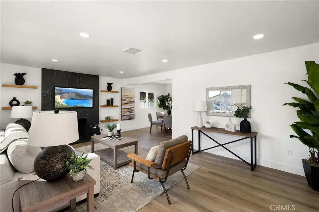 Welcome to 8811 Lanett St in Cypress, CA a remarkably transformed 3-bedroom, 2-bath home that marries modern elegance with future potential. Step inside to discover stunning laminate flooring that unifies the open living spaces, centered around a modern fireplace perfect for those cool evenings. The chef-inspired kitchen is a standout, featuring new countertops, state-of-the-art appliances, and an inviting layout ideal for entertaining. Both bathrooms have been completely redone, showcasing contemporary fixtures and a luxurious walk-in shower. In the primary suite, a stylish barn door adds a unique accent to both the bedroom and the en-suite bath. Additional upgrades include a new tankless water heater, updated electrical and plumbing systems, a newer roof, and modern windows that flood the home with natural light. Outside, the expansive backyard not only provides an excellent space for outdoor gatherings but also offers exciting future potential for an ADU. Ideally located in a desirable Cypress neighborhood with convenient access to local amenities, this property delivers a perfect blend of move-in-ready comfort and promising future enhancements.