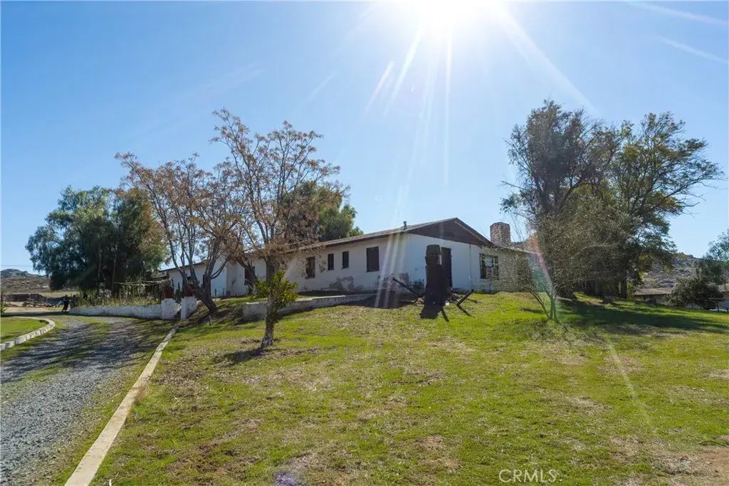 Welcome to this stunning home, thought to be designed by renowned mid-century architect Cliff May, famous for his iconic ranch-style homes that harmonize beautifully with the California landscape. Featuring classic adobe construction and a unique design, this property embodies the timeless elegance and craftsmanship that defines Mays work. While the exact origin of the design remains unverified, the homes architecture strongly reflects the signature style that made Cliff May a household name in California design. Nestled on a spacious 2.16-acre lot, this historic Ranch Adobe home offers the perfect blend of charm, character, and endless possibilities. The property boasts a remarkable foundation made of quartz, potentially sourced from the nearby Quartz Mine, adding an intriguing and natural element to the homes structure. The lush grounds feature an abundance of fruit trees, including plum, guava, orange, peach, and olive trees, offering a serene and fruitful backdrop for your lifestyle. Beautiful garden beds and strategically placed cactus plants add to the desert-inspired landscaping, creating a unique and tranquil outdoor sanctuary perfect for entertaining or quiet relaxation. The property provides ample space for all your hobbies and toys, featuring a 9-stall barn with an apartment thats ripe for creative renovation, as well as a two-car garage with an additional apartment just waiting to be transformed. Inside the main home, youll find a cozy wood-burning fireplace, an abundance of natural light pouring in from large windows, and a separate entrance that opens up poten