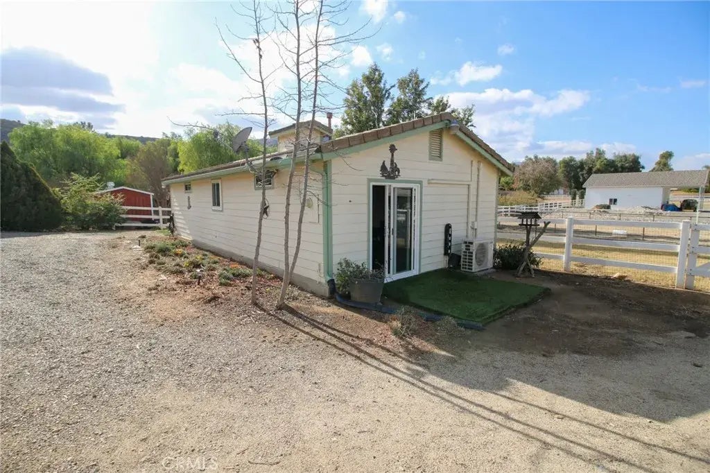 Unique opportunity: Large 1 Bed/1 Bath detached 800 sq' ADU. Immaculate and peaceful living on a well-cared for Ranchette in Wildomar. 5 min to 15 fwy/10 min to 74-Ortega Hwy. New flooring throughout. Energy efficient heating & air. Whole House Fan and Tankless Water Heater. Full Kitchen with Stove, Refrigerator, Washer & Dryer. Ceiling fans, large closet. (Partially furnished - as pictured - if desired.) The entire propety is gated with an electric gate. This home includes a 6'x6' storage shed and dedicated parking. Water, trash, internet wi-fi, Direct TV are included in the rent. Propane and electric are on separate meters and paid by tenant. No Smoking, No Drugs, No Pets - 2 people maximum. The Owner lives in the main house on the property. (Discount of $50 less per month for first responders or military.)