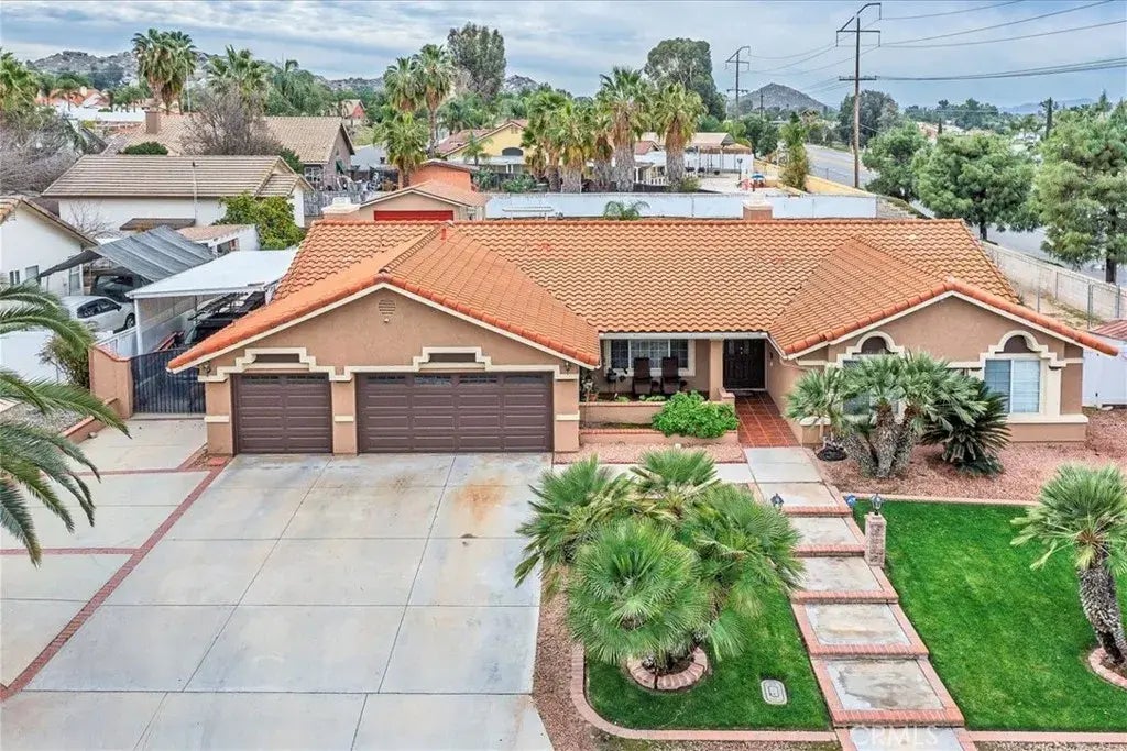 Welcome to Nuevo CA!! Beautiful Single story home featuring 4 bedrooms and 2.5 bathrooms. Located on a corner lot with an oversized driveway and RV or trailer access to the backyard. Double door entry will lead you into this beautiful home. Beautiful neutral colors in the interior. Multiple living room areas. Large kitchen with island. Family room features a fireplace... just a wonderful floorplan. Step into the backyard and you will enjoy the large space. There is a 20x20 storage shed and a pool for the summers!! 3 car garage and solar system (fully owned).