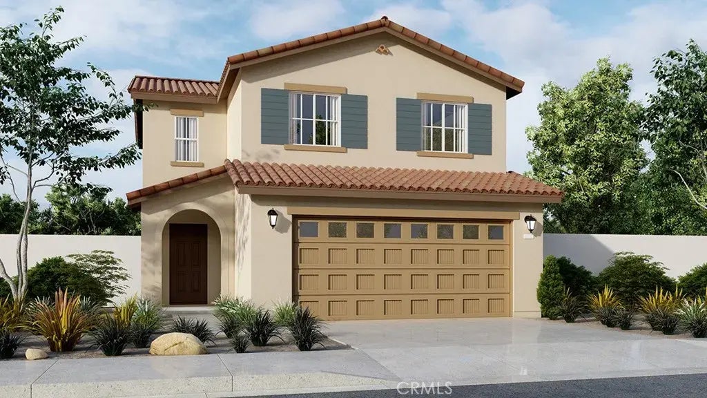 NEW CONSTRUCTION in Winchester - SOLAR INCLUDED - This is a lovely 1,378-sf home with a California Spanish Hacienda faade has 3 bedrooms and 2.5 bathrooms and also INCLUDES; REFRIGERATOR, WASHER/DRYER, WINDOW BLINDS, and BACKYARD LANDSCAPING!! The Island kitchen with island eating area has New Valle Nevado granite counters, built-in stainless-steel appliances and a walk-in pantry. The interior comes complete with White shaker-style cabinetry, lots of included recessed lighting, and vinyl and carpet flooring throughout. The downstairs includes a powder bath and upstairs the main bedroom with ensuite bathroom and walk-in closet, 2 additional bedrooms and full bathroom and a laundry room. There is also a direct-access two car garage PRE-PLUMBED for an electric car! This truly modern home has all the SmartHome features you would expect and, is LANDSCAPED AND IRRIGATED in the front and back yards. This community is situated close to park and freeway access. We anticipate a late-April 2025 move-in, and we can't wait to Welcome you Home!!