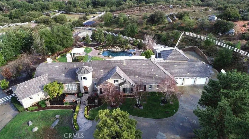 Solar Paid Off: Nestled behind private, secured iron gates, this expansive single-story Solar Power estate in the prestigious most sought-after community within La Cresta The Trails of Santa Rosa defines luxury and convenience. Spanning 5.19 fully fenced acres, this property offers an ideal balance of privacy, elegance, and functionality. With 4,927 square feet of thoughtfully designed living space, it features five spacious bedrooms and four beautifully appointed bathrooms. A grand driveway leads to two separate garagesa three-car garage and a two-car garage with ADU potential. A dedicated RV parking area with full hookups adds to its versatility. Do you have dogs? This property has x 3 fully fenced enclosed dog kennels with a dog run leading to a fenced turnout. The master suite is a private retreat, complete with a cozy fireplace, two oversized walk-in closets, and a spa-like bath with dual sinks and a large vanity. A private patio off the suite offers a serene outdoor escape. The chefs kitchen is a dream, featuring granite countertops, a large island, and premium stainless steel Viking appliances, including double ovens, a Sub-Zero refrigerator/freezer, a six-burner cooktop, a dishwasher, and a warming drawer. A butlers pantry and walk-in pantry provide extra storage and convenience. Modern amenities include a central vacuum system, two whole-house fans, soaring ceilings, and a three-zoned heating and air conditioning system. The professionally landscaped backyard feels like a luxury resort. A stunning pebble-tech pool and spa with a cascading waterfall offer a peaceful