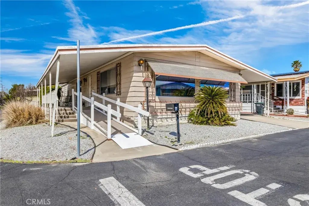 2 bedroom 2 bath mobile home in Eden Roc Villa North senior 55+ mobile home park. Large living room with light paneling and loads of windows. China hutch in dining area. Galley kitchen boasts 5-burner gas stove, Refrigerator, dishwasher, microwave, stainless steel sink, lazy susan in cabinet, and laminated flooring. Family room with wet bar and slider to large covered patio. Inside laundry closet includes washer and dryer. Spacious master with seated vanity, dual sinks, and Roman tub. Storage shed.