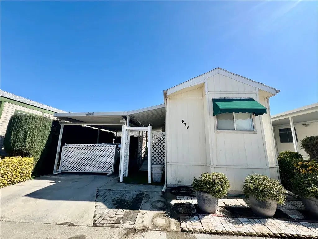 OWN YOUR LAND! DESIRED HERITAGE RANCH 55+ GATED COMMUNITY! 2001 park model approx 400 sq ft of living area ramp & steps to the front entrance. Kitchen open to the living room with vaulted ceilings. Bedroom has mirrored wardrobe closet doors and extra built in cabinetry. Bathroom with step in shower, vanity sink. Inside stackable washer & dryer unit. Wall window A/C & heating Unit. Exterior includes attached covered carport and storage shed. Incredible views of the San Jacinto mountains & green belt from your own backyard. Across from the clubhouse & mailboxes. LOW TAXES & HOA FEES OF 210.00 X MONTH includes water, sewer, trash, basic cable & internet and use of the clubhouse, gym/fitness room, library, billiard room, card room, banquet room, indoor spa, outdoor pool, covered patio with circular bar and stools great for hosting social events, shuffleboard facility and many activities to choose from. Close to shopping, restaurants, medical & hospital and great for commuters. Retire in Style!