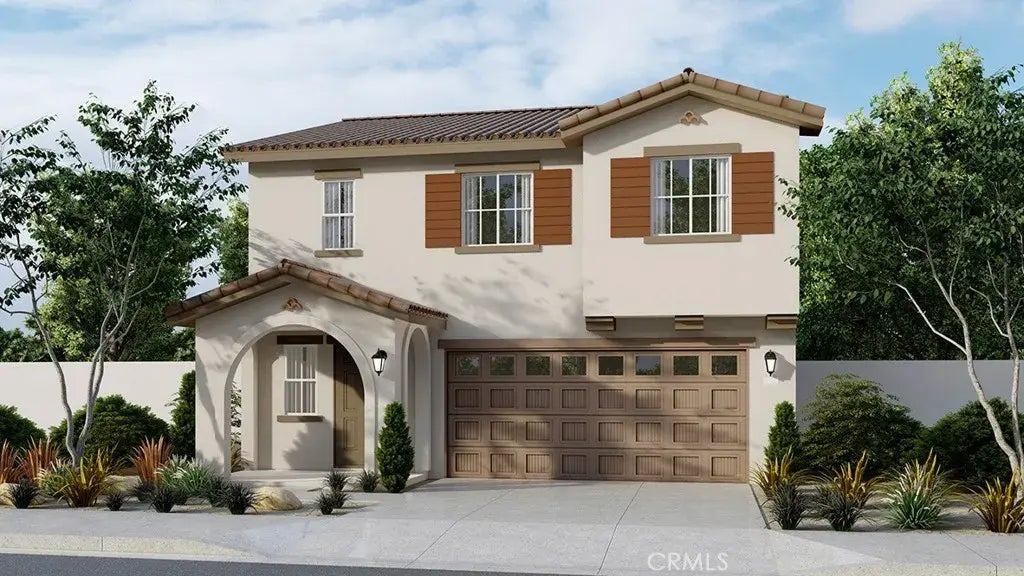 NEW CONSTRUCTION in Winchester - SOLAR INCLUDED!!! - This 1,583-sf home with a California Spanish-Hacienda faade has 3 bedrooms and 2.5 bathrooms, and upstairs LOFT! The Island kitchen with island eating area has New Valle Nevado granite counters, built-in stainless-steel appliances and a walk-in pantry. The downstairs includes a powder bath and upstairs the main bedroom with ensuite bathroom and walk-in closet, 2 additional bedrooms and full bathroom and a laundry room. The interior comes complete with Alto stained maple shaker-style cabinetry, lots of included recessed lighting, vinyl in the main living areas and plush carpet flooring in bedrooms and closets! There is also a direct-access two car garage PRE-PLUMBED for an electric car! This truly modern home has all the SmartHome features you would expect and, is FULLY LANDSCAPED AND IRRIGATED in the front yard. This community is situated close to park and freeway access. We anticipate a mid-June 2025 move-in, and we can't wait to Welcome you Home!! **HUGE SAVINGS!! Solar is "No additional cost to your buyer" - it is INCLUDED IN THE PRICE OF THE HOME**