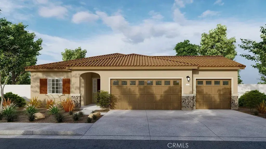 NEW CONSTRUCTION and a QUICK MOVE-IN in Perris with SOLAR INCLUDED! This 1,898- SINGLE-STORY home with a California Tuscan inspired faade located on a Cul-De-Sac has a wide entry that leads to the open concept Great room with vaulted ceiling, Dining area with slider leading to the back yard, an ISLAND kitchen with breakfast bar, Bianco Tiza Quartz counter tops, stainless steel appliances, and a pantry space. All four bedrooms are generously sized, the ensuite has a large walk-in closet, and the laundry room is conveniently located just off the main hallway. The home has Crisp White shaker-style cabinetry and Designer vinyl and carpet throughout. This truly modern home has all the Smart Home features you would expect, including a direct-access 3-car garage pre-plumbed for an electric car! This homesite is FULLY LANDSCAPED AND IRRIGATED in the front yard. The community has easy access to nearby shopping, dining, entertainment, highways and freeway. This home is ready to move in by the end of May 2025 we can't wait to partner with you to welcome your client home!! * HUGE SAVINGS!! Our Solar is "No Additional Cost to Your Buyer" it Included in the Price of the Home * * No HOA Dues * * Home is Located on a Cul-De-Sac