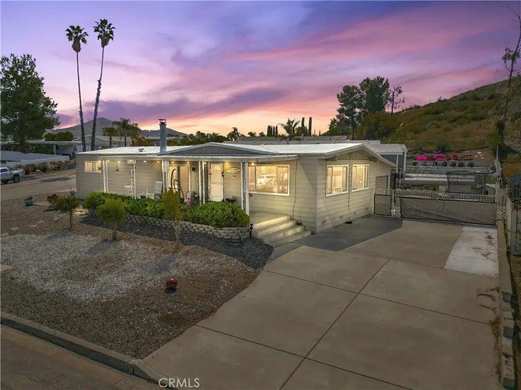 Welcome to this extremely maintained adorable double wide mobile home in the Canyon Lake Mobile Estates. Bring your RV and toys! This mobile sits on a large corner lot with 2 separate driveways with one side that has a 30 AMP and water hookup. The back yard is big enough to host outside gatherings, it has new artificial turf, a relaxing gazebo area and a covered patio . Inside this home has drywall ceilings, inside laundry has gas dryer with barn doors, walk-in pantry, remodeled front bathroom, kitchen was redone, windows were upgraded and replaced, roof was redone, ceiling fans throughout and the sellers earthquake proofed the foundation on brackets. When you move into Canyon Lake you also have access to the lake, golf course, parks, beaches, tennis courts, pickleball courts, Lighthouse Restaurant, community pool, equestrian center and Happy Camp.. Yes, there is a campground in the community! And so many more fun activities that the community host yearly. Owner's are also willing to sell furniture if your buyers like what they see. All information is deemed reliable but not guaranteed.