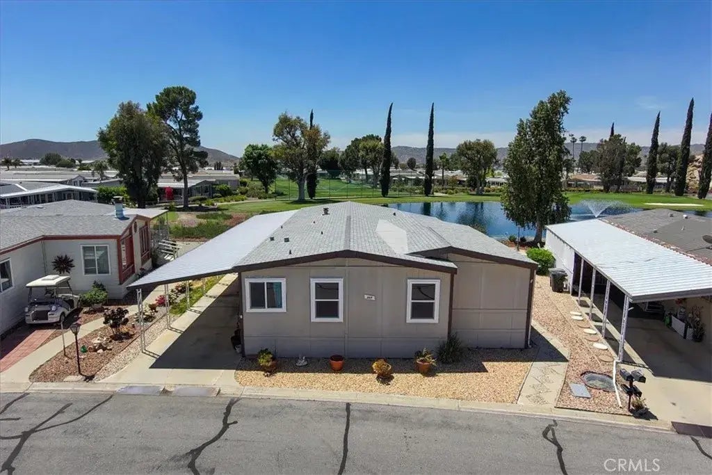 Welcome to Paradise: Your Dream Home Awaits in Our Exclusive 55+ Golf Resort Community of The Lakes at Hemet West! Step into a world of elegance and tranquility within this stunning 2-bedroom, 2-bathroom mobile home that redefines luxury living at 1840 square feet! Nestled in a vibrant 55+ golf resort community, this exquisite property is not just a home; its a lifestyle that promises leisure, comfort, and breathtaking views. Enjoy abundant space in the living room for entertaining friends and family or simply indulging in peaceful solitude. The open-concept design accentuates the flow of natural light, creating a warm and inviting atmosphere. Take in Spectacular Views. Picture waking up to stunning panoramic views of a shimmering lake and a beautifully manicured golf course right from your front windows. Enjoy serene mornings sipping coffee on your private porch while watching the sun rise on the sparkling water and cascading waterfall. The kitchen is equipped with updated appliances, ample cabinetry, and generous counter space, perfect for the culinary enthusiast or casual cook alike. Gather around the kitchen island for casual meals or entertaining guests! Retreat to your master suite, a tranquil oasis complete with an en-suite bathroom featuring double sinks, a soaking tub, and a separate shower. As part of this 55+ community, youll have exclusive access to a range of resort-style amenities, including a pristine golf course, clubhouses, fitness facilities, and social events that foster friendship and fun. Dive into the community lifestyle where every day feels like a va