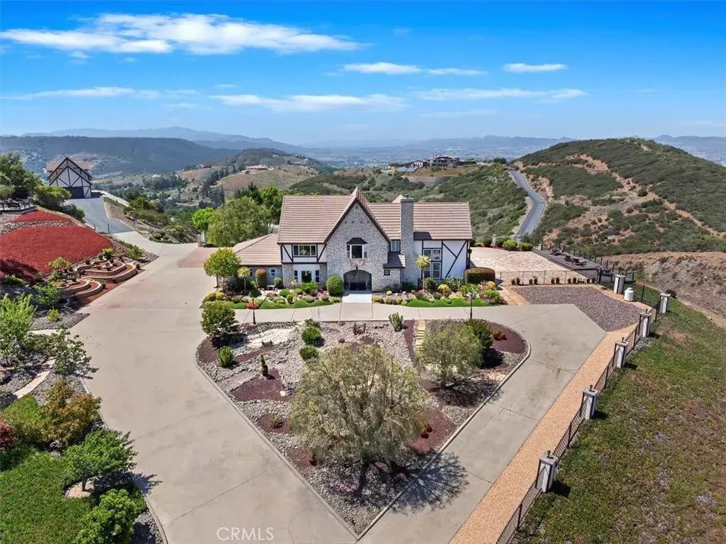 MUST SEE PROPERTY!!! Nestled in the hills of De Luz, just 4 minutes from Old Town Temecula, this STUNNING 3-RESIDENCE COMPOUND has a combined approximately 5,515 SF LIVING AREA between main home & two separate units + 2,800 SF pre-wired, 2-level DETACHED WORKSHOP / GARAGE offering enormous POTENTIAL AS A THIRD ADU OR LUXURY GUEST HOUSE, with private balcony, patio & scenic views from every angle (a combined total of 8,300+ SF potential living areas). This rare property includes TWO INCOME-PRODUCING UNITS with a 2-bedroom 800 SF BASEMENT APARTMENT with private entrance, 2-car 700+ SF Garage, Kitchenette & covered patio plus a separate 465 SF STUDIO WITH PRIVATE DECK, new flooring & mini-split A/C. Both units are ideal for guests, rentals, or multigenerational living. INVESTORS SHORT TERM RENTALS ARE ALSO ALLOWED FOR ADDITIONAL RENTAL INCOME POTENTIAL and NO HOA! Separate Garages can hold a total of 9 cars. Fully fenced, dual-gated 5.07 acres offers unmatched privacy, PANORAMIC VIEWS & exceptional versatility. Main grand English Tudor residence spans 4,250 SF with 4 bedrooms, 3 baths, beautiful hardwood and tile flooring, 7 base, crown moulding & high-end finishes throughout. Formal Living Room features 20 ceilings, stack-stone fireplace, and elegant Kitchen boasts granite counters, stainless appliances, large island & French doors opening to a private patio with SWEEPING CITY AND MOUNTAIN VIEWS. Oversized Primary Suite includes dual French doors to private deck with PANORAMIC VIEWS, a spa-like Bath includes soaking tub & quartz vanities, large travertine shower + custom, wa