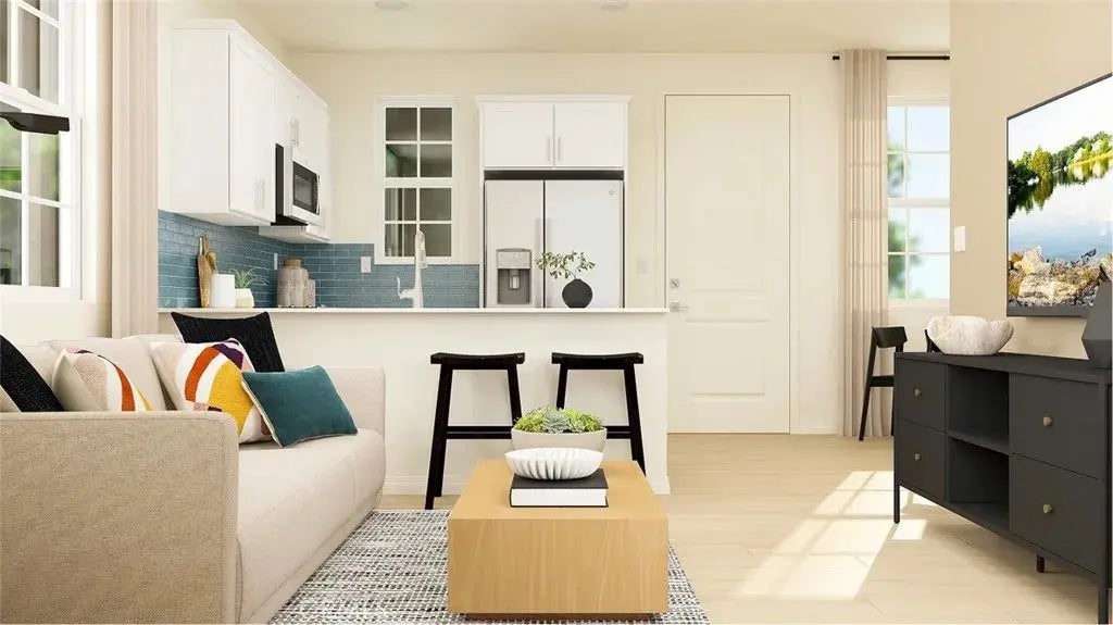 NEW CONSTRUCTION! This new two-story home is host to a spacious open-concept layout on the first floor, featuring a U-shaped kitchen, cozy dining area and inviting living room. On the second floor, a versatile loft provides a convenient shared living area easily accessible from a bedroom and lavish owners suite, complete with a full-sized bathroom. Vibe is a new series of single-family homes now selling in the Nuvo Parkside masterplan in Ontario, CA. The gated masterplan offers onsite amenities, including a modern clubhouse and BBQ area. A future Great Park and Sports Arena are planned to be built near the community. Ontario Mills Mall is home to a variety of shopping and dining options, and residents can catch a live performance from a hit artist at the Toyota Arena. Plus, the Ontario Airport is a short drive away.