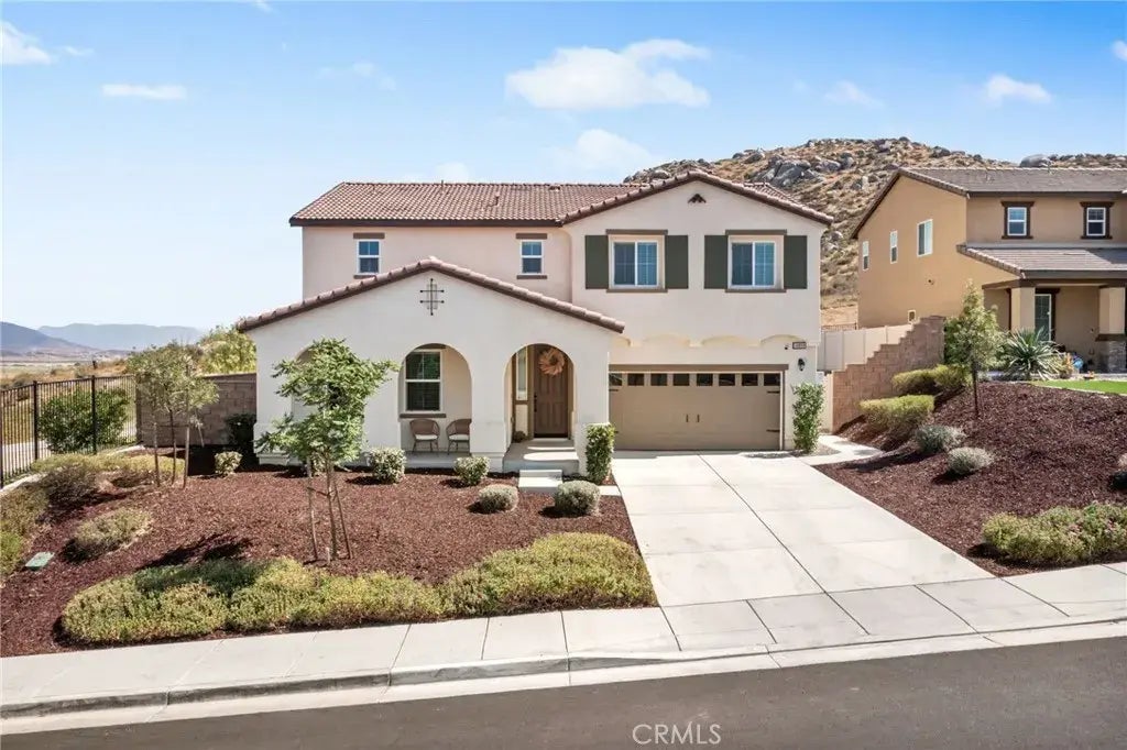 Welcome to the ultimate entertainers dream home nestled in the scenic hills of Winchester! This stunning 5-bedroom, 3.5-bathroom residence has been thoughtfully designed with style, comfort, and functionality in mind. Step inside and immediately feel the flow of the open-concept layout, featuring gorgeous tile wood plank flooring throughout the main areas and plush carpet only in the bedrooms. A full downstairs suite with a private bath and walk-in closet offers flexibility for guests or multigenerational living. The heart of the home is the designer kitchen and living space, boasting quartz countertops, a large island, 5-burner stove, gold pendant lights, and a walk-in pantrythe perfect stage for culinary creativity as well as hosting your favorite game day gatherings or epic movie nights with a large projector screen in the living room! But the magic truly happens outside. Backing up to peaceful rolling hills with just one neighbor, the resort-style backyard features upgraded pet turf, gazebos, an alumawood patio cover, a wall-mounted outdoor TV, and moreyour own private retreat to relax or entertain in style. Upstairs, a spacious loft with a walk-in closet offers potential as a 6th bedroom or media space, the choice is yours! The primary suite is a true sanctuary with sweeping views, and the upstairs laundry room adds everyday convenience. Additional features include: * 26 solar panels with backup battery for efficiency and peace of mind * EV charger and smart home technology for modern living * Low HOA for greater freedom * Custom accent walls, window blinds throughout,