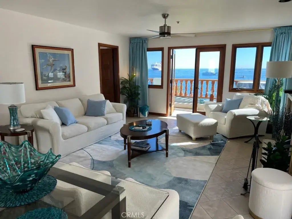 Catalina Island, Hamilton Cove Villa, Living the Dream! This rare 2 bedroom, 2 bath end unit has zero steps to the front door and zero steps inside the unit! Enjoy this light-airy decorated home that is relaxing the moment you walk through the front door and are looking over the ocean. Cool ocean breezes cool down the inside or cozy up to your wood burning fireplace in the living room on brisk evenings. Open-concept kitchen, dining and living room. Access one of two balconies off of dining room, main bedroom and living room. Building 10 is right on the water, no worry about looking over anyone's roof top. Six person golf cart included. Comes fully furnished down to the linens and kitchenware. Hamilton Cove is a private guard gated community that comes with an abundance of amenities including clubhouse, pool and spa facilities, gym with locker room, private beach access and boat dock, pier, sand volleyball and playground, all grass put-put golf course, picnic area with outdoor charcoal BBQ, and storage for small water craft. This unit has short-term rental permit which will pass on through the sale.