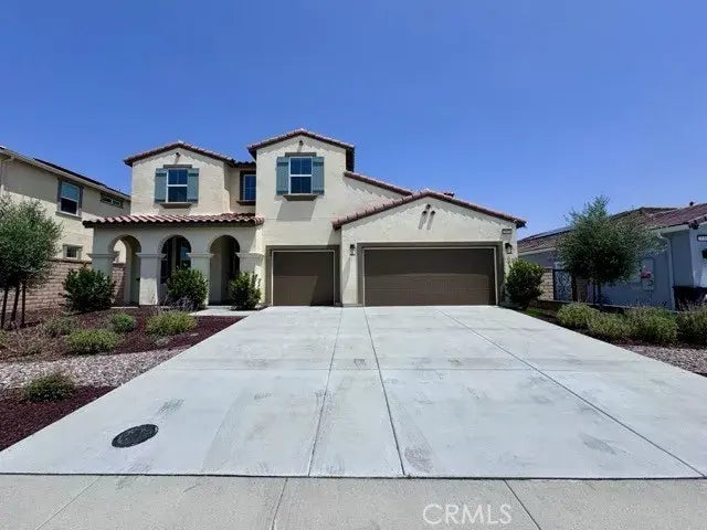 Welcome to this stunning two story Audie Murphy Ranch home, now available for lease in Menifee! This spacious property features 4 bedrooms, 3.5 bathrooms, a large loft, a den, and a 3 car garage, all nestled in a desirable community with exceptional amenities. As you enter, you're greeted by a formal living room that seamlessly flows into a chefs dream kitchen. The kitchen boasts white cabinetry, granite countertops, stainless steel appliances, upgraded light fixtures, and a large walk-in pantry. It opens effortlessly to both the dining area and the expansive family room, making it ideal for entertaining. The main level also includes a half bathroom, a generous den, and an oversized laundry room with built-in storage. Upstairs, youll find an oversized loft offering versatile living space along with all four bedrooms. The primary suite is exceptionally spacious, filled with natural light, and includes an ensuite bathroom with dual sinks, a soaking tub, a walk-in shower, and a large walk-in closet. The backyard is impressively sized and features low-maintenance artificial turf making it perfect for relaxation and play. The Audie Murphy Ranch community provides an incredible lifestyle with amenities including parks, schools, walking trails, a clubhouse, sparkling pool and spa, and more. This home is truly a gem and won't last long, schedule your showing today!