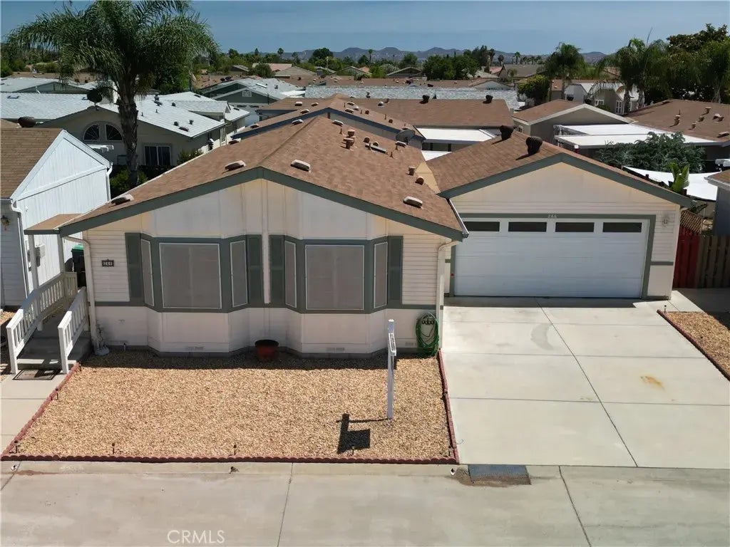 ***MOVE-IN READY 55+ SUN CITY GEM*** PRICED TO SELL FAST*** Back on the market! No fault of the seller! Welcome to your serene new oasis in the Sun Meadows gated 55+ community, perfectly positioned on a peaceful cul-de-sac. This charming, single-story manufactured home offers 1,200 square feet of thoughtful living space, featuring: 2 bedrooms and 2 full baths, including a primary suite with dual sinks and walk-in shower. Built in 2001, this home presents a modern, well-maintained interior with plantation shutters and ceiling fans throughout. Inviting living & dining area, complemented by a cozy fireplace and vaulted ceilings. Functional kitchen with ample cabinet space, and in-home laundry with washer/dryer included. Bright secondary bath complete with skylight Outdoor living shines with a covered patioideal for morning coffee or evening relaxation. A spacious attached 2-car garage offers convenience and storage, while well-manicured grounds enhance the low-maintenance lifestyle. Enjoy access to the clubhouse, pool, spa, sauna, gym, shuffleboard, putting green, temmis, picleball, horseshoes, card room, library with crafts, sewing and ceramics, billard room, and community eventsall designed for an exceptional 55+ lifestyle. Nestled in Sun City (Menifee), youre just minutes away from shopping, dining, healthcare, and outdoor recreation, including Temecula wineries just 30 minutes away. Dont miss this rare opportunity to own in a friendly, gated senior community where quality, comfort, and convenience come together. Perfect for downsizers, retirees, or those seeking a low