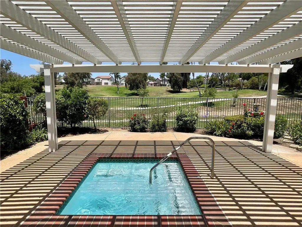 Beautiful 2 Bedroom + Den, Golf Course View Home with Spa. Discover the charm of this 2-bedroom, plus den, 2-bathroom home with a 2-car garage, ideally situated in the highly desirable Temeku Hills community of Temecula. The versatile den offers the perfect space for a home office, guest room, or optional 3rd bedroom. Step inside to an inviting formal living and dining area featuring custom built-in cabinetry, providing both functionality and style. The open-concept kitchen and cozy family room with fireplace sit at the back of the home, offering beautiful views of the lush backyard and serene golf course. The kitchen includes an island with seating for 2-3 bar stools, a built-in desk area, and ample storage, perfect for both daily living and entertaining. The spacious primary suite, located at the rear of the home for added privacy, boasts a walk-in closet, double vanity, soaking tub, and separate shower. Toward the front of the home, you will find the den, laundry room, second bedroom, and guest bath. Enjoy wood flooring throughout the main living areas, with carpet in the bedrooms for added comfort. Step outside to your private backyard retreat, complete with a spa, beautifully landscaped surroundings, and a large covered patio, perfect for relaxing evenings or weekend BBQs, all while enjoying golf course views. Located just a short distance to the HOA clubhouse, pool, and amenities, and only minutes from Temecula Wine Country, shopping, dining, top-rated schools and 15 freeway for commuting. This home is a MUST SEE!