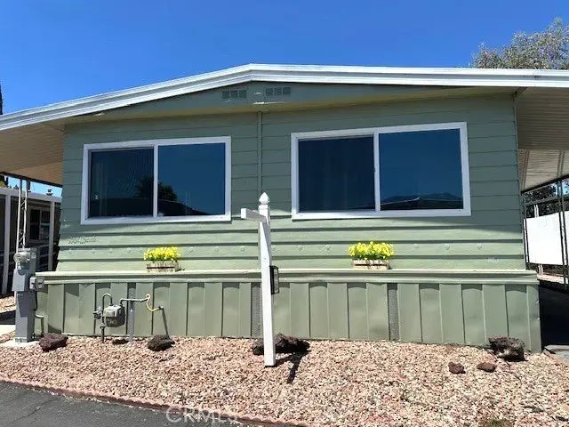 55+ Great Community of Vogue Manor. This is a small, clean, quiet, very peaceful park. This home has been beautifully remodeled. All the walls in this home have been textured and looks like all drywall through this lovely home. All new cabinets throughout the home. Central heating & air conditioning and all dual pane vinyl windows for energy efficiency. Laminate flooring with carpeting only in the bedrooms and the home is painted with light warm colors. The kitchen has all brand new stainless appliances. Bedrooms have mirrored wardrobe doors. Master bedroom is very large with extra room for a dresser or a vanity area. Bathrooms are completely remodeled. Living room with large windows and beautiful views of the Idyllwild and San Jacinto mountains. Wow bring your picky buyers and they will love it. Seller is motivated so bring your offers... This is resort style living with the park offering a swimming pool, jacuzzi, shuffleboard, game room, library, exercise room, billiards and a clubhouse. Affordable rent also of $665.00.