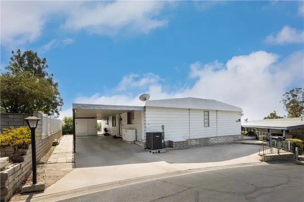 Gorgeous Triple-Wide Home with Panoramic Views! Step into this beautifully renovated 2,108 sq ft triple-wide located in the highly desirable 55+ gated community of Mountain Shadows in Highland. With sweeping mountain views and a layout designed for both comfort and accessibility, this home is a rare find. Thoughtfully upgraded for ease of living, it features wide arched doorways, a gentle entry ramp, roll-in shower, roll-under sinks, and strategically placed grab barsperfect for those seeking a more accessible lifestyle. Recent updates include a new HVAC system, wood-look flooring, fresh interior finishes, and a fully remodeled kitchen and primary bath. The roof has been treated with a durable, weather-resistant sealant, and the exterior is enhanced with updated lighting and four Ring security devices. Inside, enjoy a light-filled living and dining area with wall-to-wall windows, plantation shutters, and a cozy gas fireplace. A separate family room offers built-in shelving, a second fireplace, and sliding doors that open to the outdoors. The kitchen is a true showpiece, featuring custom cabinetry with soft-close organizers, butcher block countertops, and all-new appliances. The sunny dining nook is perfect for casual meals or entertaining. The primary suite is oversized and serene offering a peaceful retreat with generous space and comfort. Mountain Shadows offers a beautifully appointed clubhouse with a banquet hall, lounge, library, and big-screen TV area. Residents enjoy a heated pool, spa, saunas, fitness center, and billiards roomall just steps from your door. Convenie