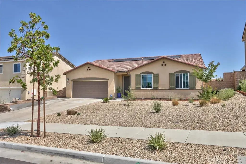 Welcome to this absolutely stunning single level home built in 2022. This immaculate property features a spacious open floor plan with a large great room centered around a cozy fireplaceperfect for relaxing or entertaining. The chef-inspired kitchen is a showstopper, boasting a massive island, quartz countertops, white shaker cabinets, and sleek stainless steel appliances. Luxury vinyl plank flooring runs throughout the entire home, adding warmth and durability with a contemporary touch. Step outside to your private oasis featuring professionally designed, drought-tolerant, low-maintenance landscaping. Enjoy year-round outdoor living under the Alumawood patio cover, on the tiled concrete patio, or soaking in the hot tub. A convenient storage shed provides added functionality. Additional highlights include a solar system for energy savings, modern finishes throughout, and a layout designed for todays lifestyle. Located in the top rated Temecula School District and close to new shopping centers, wineries, Lake Skinner and more! Dont miss this opportunity to own a nearly new home with all the upgrades already in place!