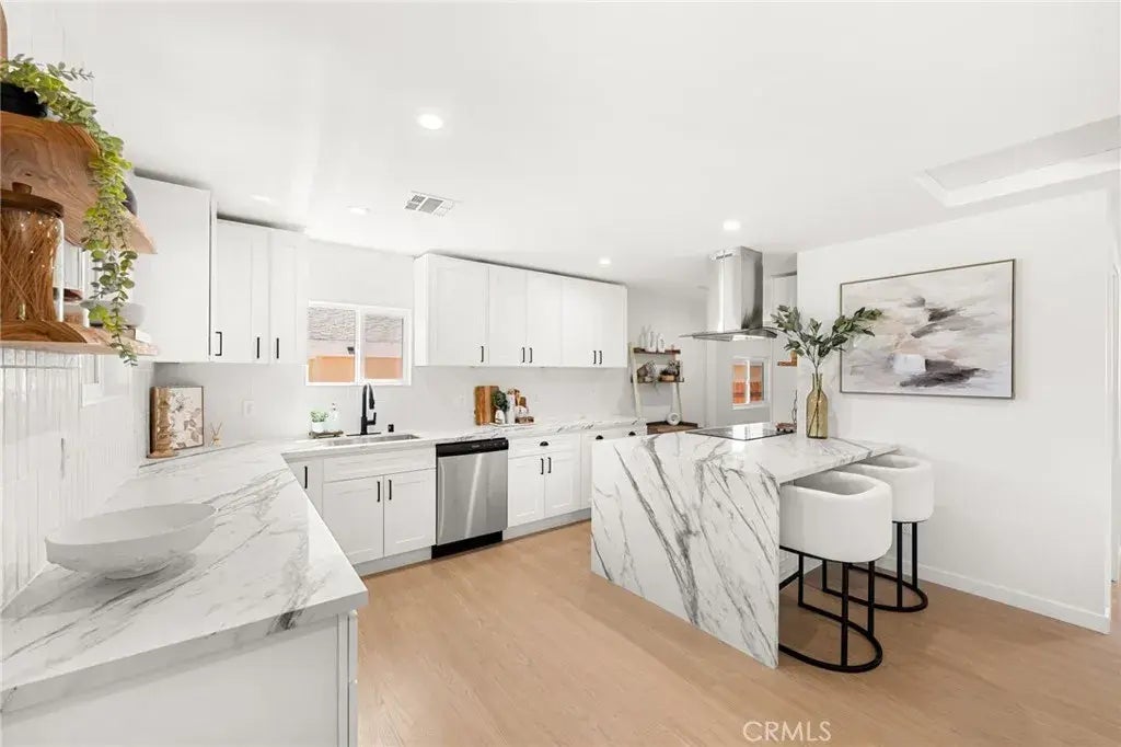 Welcome to Your Fully Renovated Single-Story Dream Home on a Spacious Lot with Bonus Room, Detached Garage, and Gated Parking! Step inside this stunning, move-in-ready home thats been completely upgraded from top to bottom. Boasting a bright and airy open floor plan, this home features a brand-new all-white kitchen complete with veined quartz countertops, a striking waterfall-edge island, white cabinetry, a large stainless steel sink, and matching appliancesperfect for both everyday living and entertaining. Enjoy the elegance of new luxury vinyl plank flooring throughout the home, and relax in the sun-filled great room designed for comfort and gatherings. The Hallway opens up to a perfect, cozy private dining space leading to the guest rooms. The spacious primary suite offers a private retreat with a large walk-in closet, ceiling fan, en-suite full bathroom, and a private door leading to the backyard. Two additional bedrooms feature ample closet space, ceiling fans, and share a stylish upgraded Jack-and-Jill bathroom. Step outside to your private backyard oasis, situated on a massive, fully usable lot with brand-new grass, mature landscaping, gated access, and total privacyideal for outdoor entertaining or future expansion. The property also includes a detached 1-car garage with automatic door and an attached bonus room, perfect for a home office, studio, or flex space to suit your lifestyle needs. Conveniently located near the 10, 60, and 605 freeways, youll have easy access to Downtown LA and all that Southern California has to offer. Dont miss this rare opportunity to ow