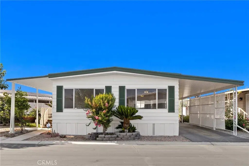 Refurbished 2 bedroom 2 bath mobile home centrally located in Golden Coach Manor 55+ senior mobile home rental park. Decorative, leaded-glass-accented entry door and security screen door. Formal living/dining room combo with china hutch and ceiling fan. Open-concept kitchen with laminated counter tops, butcher-block-look center island, 5-burner gas stove, Dbl stainless sink, dishwasher. Family room with wet bar and slider to covered porch. Primary bedroom has mirrored wardrobe and extra close space, ceiling fan, dressing area with seated vanity, large handicap-accessible shower. Guest bedroom has en suite bath with convenient secondary access to inside laundry, kitchen, and carport side door. Gray oak-look LVP flooring. Shed. Tall carport. New air conditioner and thermostat. Close to dining and shopping options. Lovely park amenities.