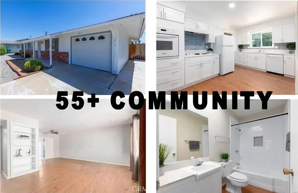 Welcome home to 28590 Middlebury! You will love this beautifully remodeled home in the 55+ Community of Sun City Core with 3 bedroom 2 baths in this popular Menifee suburb. So much room for parking. Home features NEW bathrooms, NEW kitchen, NEW carpeting, NEWER Central Air/Heat, NEW sliders, new kitchen window, NEWER roof (2022) and NEWER water heater. Enter through the front door to this light and bright open floorplan with hard flooring and featuring a huge living room and dining room space. This kitchen sparkles with quartz countertops and features clean line cabinetry with lots of storage. Kitchen has a pantry with plenty of storage. Step off the kitchen to the utility room with stackable washer/dryer. The spacious Sun room provides an oversized extra living area. Primary suite features oversized windows, new carpet and a makeup table with lighting in addition to dual closet areas. All bedrooms are ample and freshly carpeted. Step outside and you will enjoy drought-tolerant landscaping affording you more time to enjoy the sunsets and happy hours with family and friends under the expansive patio cover. This community features Community pool/spa, clubhouse, gym & more! Close to so much shopping, medical and easy commuting. You wont want to miss this beautiful oasis.