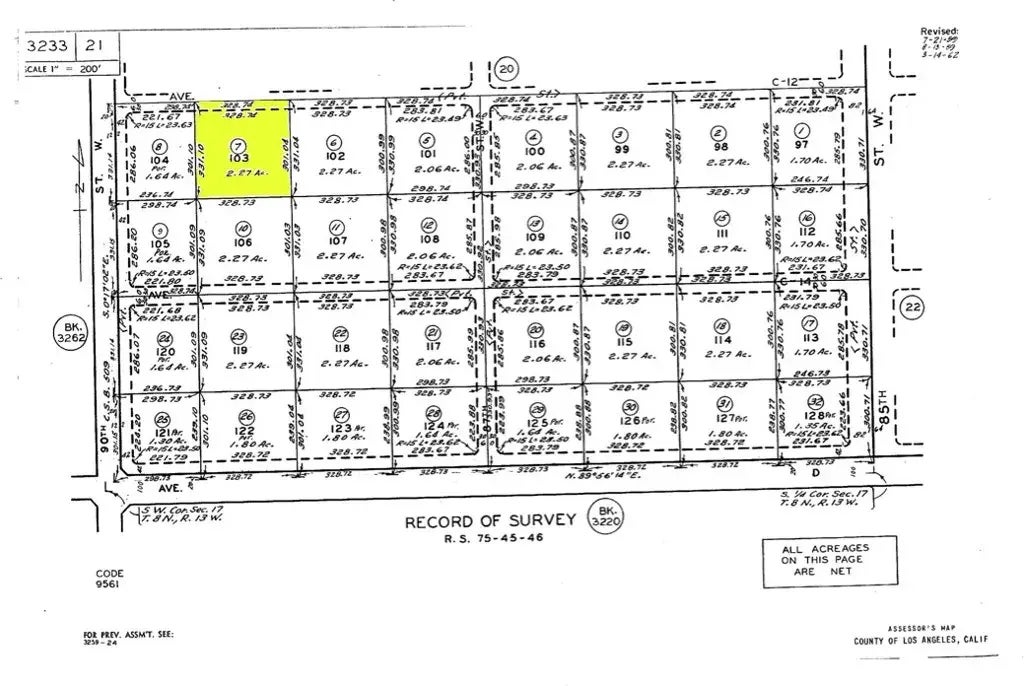 Don't miss this exceptional opportunity to own 2.49 acres of prime land at 0 Vac/Ave C12/Vic 89 Stw, Antelope Acres, CA 93536 (APN: 3233-021-007), nestled in a serene and spacious setting just off paved 90th Street West. This expansive parcel offers a peaceful rural atmosphere with beautiful mountain views, while being surrounded by well-maintained custom homes, ranch-style estates, and nearby developed lotsreflecting pride of ownership in the area. Located just minutes from Lancaster, this property blends quiet country living with convenient access to city amenities, making it an ideal location for those seeking space, privacy, and long-term potential. ****No soils reports, surveys, etc., have been done. Buyer and buyer's agent to verify all information with the city or county for allowable uses and requirements and rely on their own investigations. **Buyer responsible for checking zoning, utilities, permits and exact property boundaries. ****