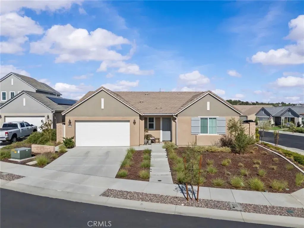 GATED 55+ COMMUNITY | ESPLANADE AT SOMMERS BEND | CUL-DE-SAC | CORNER LOT | PAID-OFF SOLAR | TANKLESS WATER HEATER | LARGE LOW-MAINTENANCE BACKYARD | SINGLE STORY | You have Arrived! This beautiful home features 3 bedrooms and 2.5 bathrooms with a thoughtfully designed open-concept floor plan. As you enter through the front door, youre immediately greeted by a spacious family room that flows seamlessly into the dining area and kitchen. The kitchen is a chefs delight with a large center island and a walk-in pantry, offering both style and functionality. The primary suite is privately situated down the hall, featuring a generously sized walk-in closet and a spa-like bathroom with an oversized walk-in shower. Two additional bedrooms and a full bath provide comfortable space for guests or a home office. Step outside to your backyard retreat, complete with an extensive aluminum patio cover, a cozy outdoor gas fireplace, and low-maintenance landscaping with turf and concrete walkways, ideal for relaxing and entertaining year-round. Living in Esplanade means access to exclusive resort-style amenities, including a clubhouse, pool, fitness center, and more. All this, just minutes from Temecula Wine Country, shopping, and dining. This home perfectly blends comfort, convenience, and community. Dont miss the opportunity to make it yours!
