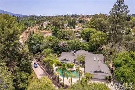 ONE OF A KIND! STUNNING CUSTOM-BUILT HOME with POOL-TENNIS & PICKLEBALL COURT Turnkey, single story located in Southeast Redlands. POOL HOME on nearly an acre. PRIVACY is all yours on TOP OF THE HILL. You will LOVE the LUSCIOUS LANDSCAPING and gorgeous paver driveway that wraps up to a large parking area with a two-car garage, surrounded by mature trees (some fruit). +100 year old Carob Tree with lanterns for romantic evenings outdoors. Magnificent views with a tennis & pickle ball court that completes the luxurious feel of this quiet and secluded home which is less than ten minutes from downtown Redlands and I-10. Custom floor plan has it all. Formal living room with vaulted ceilings, a family room with sliders open directly to the pool and leads straight into a spacious kitchen with natural light from a large garden window, and Formal dining room. As you would expect, the large primary suite includes a sliding glass door to the outdoor back patio. The other three bedrooms are perfectly located on the other side of the house, with two full baths. Redlands schools have high ratings. Note the pebble-tec pool has a light green color to give it a natural lagoon effect. Pool water is clean. Pool equipment works fine.