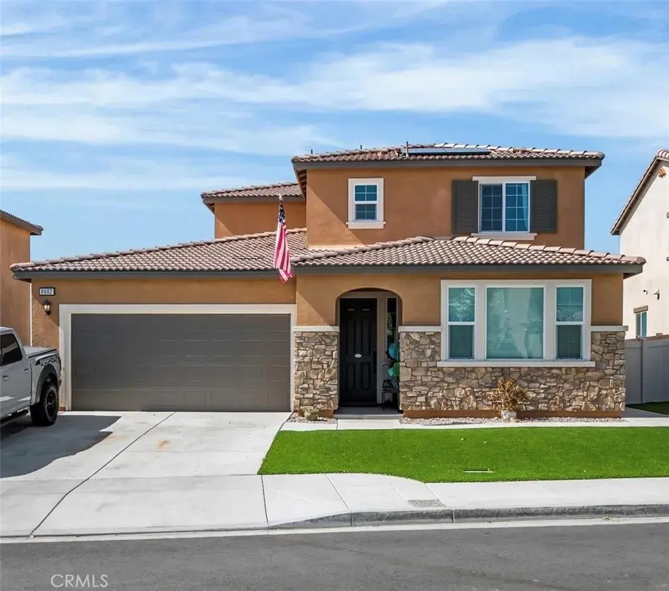 Welcome to this stunning 4-bedroom, 3.5-bath home built in 2023, perfectly located on a peaceful cul-de-sac. This contemporary residence features a Next Gen suite complete with its own private entrance, kitchenette and bathroom ideal for multi-generational living, guests, or an income opportunity. Inside, youll find an open floor plan filled with natural light and modern finishes. The gourmet kitchen flows seamlessly into the dining and living spaces, creating the perfect setting for entertaining. Upstairs, the spacious primary suite offers a serene retreat while two additional bedrooms provide plenty of room for family and guests. The upstairs laundry room is very convenient as well. The backyard is beautifully landscaped with low-maintenance turf and stylish rockscape, giving you a private outdoor oasis without the upkeep. Paid-off solar panels ensure energy efficiency and long-term savings, while the two-car garage adds convenience and storage. House is equipped with the Taexx pest control system. Residents will love the community amenities, including a sparkling HOA pool and park just steps away. With its prime location, modern design, and versatile Next Gen suite, this home offers the perfect blend of comfort, style, and functionality. Don't miss your chance to own this exceptional home that checks all the boxes for modern living.