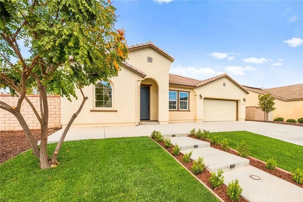 Incredible single story Menifee family home with Next Gen Suite located in the highly desirable community of Audie Murphy. 2,504 sf 4 bedroom 3 bathroom Spanish style California ranch with a 3 car tadem garage and freshly landscaped front yard with great curb appeal to set the stage for the "like-new" home. This model is one of the most sought after models in Audie Murphy, with the open floor plan, guest mother in-law suite, great room and grand kitchen offering 12' ceilings, finished in fresh paint, and brand new neutral laminate flooring throughout. The large kitchen has an abundance of cabinetry, granite counters, large walk-in pantry, large center island, dark cherry cabinets, and stainless appliances. The island offers central bar seating adjacent to the dining area, and shares the main space with the large and open living room laid out in true great-room form. The guest suite has its own kitchenette, living room/bonus area, and full bath on its own wing of the home. The oversized primary bedroom is privately to the rear corner with lots of natural lighting and connected primary bathroom, offering a walk-in shower, soaker tub, dual sink vanity, and not one but 2 separate walk-in closets. To the rear of the home, the comfortable and shaded rear yard has a California room style patio cover with plenty of space and a larger side yard great for a dog run or other usable space. One option for this area could be to separate the guest suite access from the main home, making it it's own ADU and create its own yard space as an ADU WITH ITS OWN YARD. Located walking distance fro
