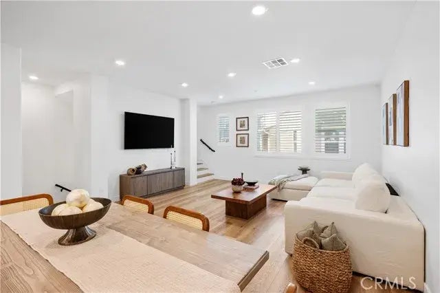 Welcome to the brand-new luxury triplex located in the resort-style community of Serrano Summit in Lake Forest! This stunning home features 3 bedrooms, 3.5 bathrooms, and a host of modern upgrades. The flooring throughout the home has been upgraded with brand-new hardwood floors , every detail has been thoughtfully designed for both comfort and style. The first floor includes a versatile bedroom with a full bath and walk-in closet, perfect for use as a guest room or home office. Moving up to the second floor, youll find an open-concept living area that seamlessly blends with a beautifully kitchen. This space boasts self-closing cabinets, stainless steel appliances, granite countertops, and a deck extending from the living room, ideal for outdoor relaxation. The third floor houses the primary suite, complete with a large bathroom and an expansive walk-in closet. An additional bedroom with its own spacious bath is also located on this level. Throughout the home, custom-designed window plantation shutters, hard wood flooring in the living areas also in the bedrooms, and recessed lighting add to the homes luxurious feel. Every room is bathed in natural light, creating a warm and inviting atmosphere. Serrano Summit offers a wealth of community amenities, including swimming pools, a resort-style clubhouse with cabanas, BBQs, fire pits, event spaces, and pickleball courts. The location is unbeatable, with just a 10-minute drive to Irvine Spectrum, 20 minutes to Laguna Beach, UC Irvine, and John Wayne Airport. Plus, youre conveniently close to shopping centers, banks, restaurants,