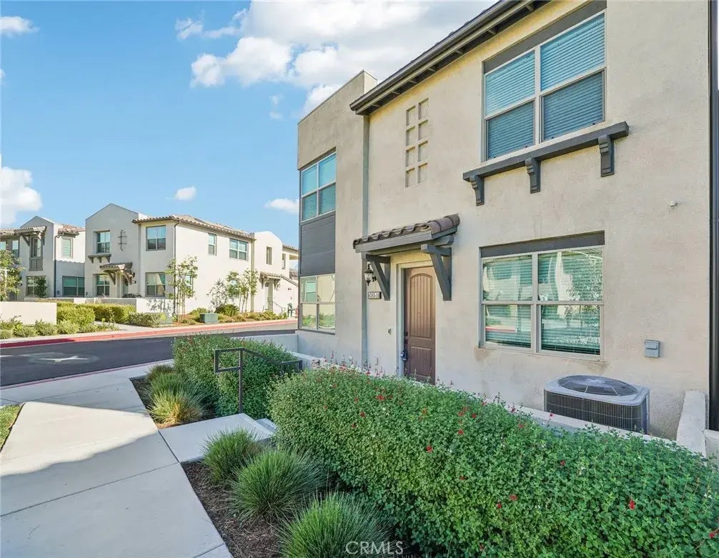 Experience the perfect blend of urban convenience and contemporary living in this stylish two-story condo nestled in the highly desirable community Ventana. Boasting modern design and a prime location, this 3-bedroom, 2.5-bathroom with energy-efficient features and smart home technology residence offers a comfortable and vibrant lifestyle. Enjoy the charming deck and patio in the front, perfect for alfresco dining, relaxation, or container gardening. It's an inviting space to unwind after a long day. Step into a spacious and inviting open concept living space that seamlessly connects the living, dining, and kitchen areas. Large windows flood the interior with natural light, creating a bright and welcoming atmosphere. The sleek kitchen is a chef's dream, featuring kitchen island, stainless steel appliances, quartz countertops, and ample cabinet space. On the upper, you'll find two bedrooms sharing a full bath and generous master suite offering privacy, comfort, and convenience. The suite features walk-in closet and en-suite bathroom with modern fixtures and finishes. Also, there is a dedicated laundry closet adds convenience to your daily routine, with space for a full-size washer and dryer. This home is part of a well-maintained community with pool/spa and BBQ area, providing opportunities for relaxation and recreation close to home. A perfect convenience in an unbeatable location - just walking distance to the plaza cross the street with Costco, market, dining, and easy access to freeway 15 & 60. Great opportunity to make this modern oasis your new home or to invest. Conta