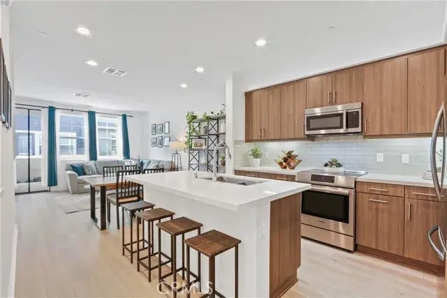 Welcome to 10622 Owens Way, El Monte a modern haven where style meets practicality, highlighted by the exceptional value of PAID-OFF SOLAR PANELS! Upon entry, you're greeted by soaring high ceilings and elegant wood plank flooring, creating an inviting and sophisticated ambiance. This beautifully maintained home features three spacious bedrooms, each designed to offer a private retreat for ultimate comfort, and three bathrooms. The sleek, contemporary kitchen is perfect for any culinary endeavor, boasting stainless steel appliances, chic silver hardware, and plenty of space for everything from gourmet dinners to quick bites. The open-concept living and dining areas create a seamless flow, ideal for both entertaining guests and relaxing at home. Step out onto the expansive balcony to enjoy your morning coffee or unwind after a long day in a peaceful, serene setting. Your primary suite provides a relaxing escape, complete with a spa-like bathroom that features dual sinks, premium finishes, a large shower, and a separate toilet area. With thoughtfully designed closet space throughout, storage is never a concern. Convenient features include an in-unit laundry room, guest parking, and community EV chargers. Plus, you'll enjoy the benefits of living close to major freeways, shopping, and dining options. With its move-in-ready condition and paid-off solar panels, this home offers exceptional energy savings and modern luxury. Dont miss the chance to make 10622 Owens Way your dream home!