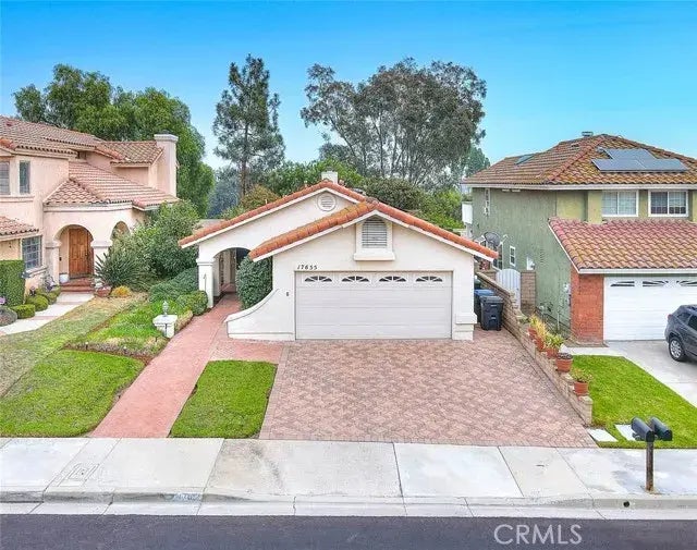 Welcome to this popular one-story floorplan in the Marlborough built subdivision in Butterfield Ranch. This is a former model home with nice landscaping touches and a built-in gunite spa. A double door entry and covered front porch opens to a tiled foyer and vaulted ceilings in the living room. There is a fireplace and dining area with the kitchen and nook around the corner. Upgraded kitchen cabinets and counter tops. A sliding glass door exits to the back yard from the kitchen and nook. A gas range, stainless steel dishwasher and built in microwave are nice upgrades. All windows have been upgraded with dual pane and vinyl frames. The primary bedroom boasts vaulted ceilings and a ceiling fan. A sliding door exits to the covered back patio. Pavered stones grace the driveway, patio and side yard walkway. The garage is fully finished with lighting and French doors to the side yard. Leased solar, buyer is to assume. The approximate balance is $10,000, 10-year-old system, $95 per month Walk to the greenbelt or nearby mini mart and restaurant. Easy freeway access and award-winning schools! Just a few minutes drive to Chino Hills High or Butterfield Ranch Elementary!