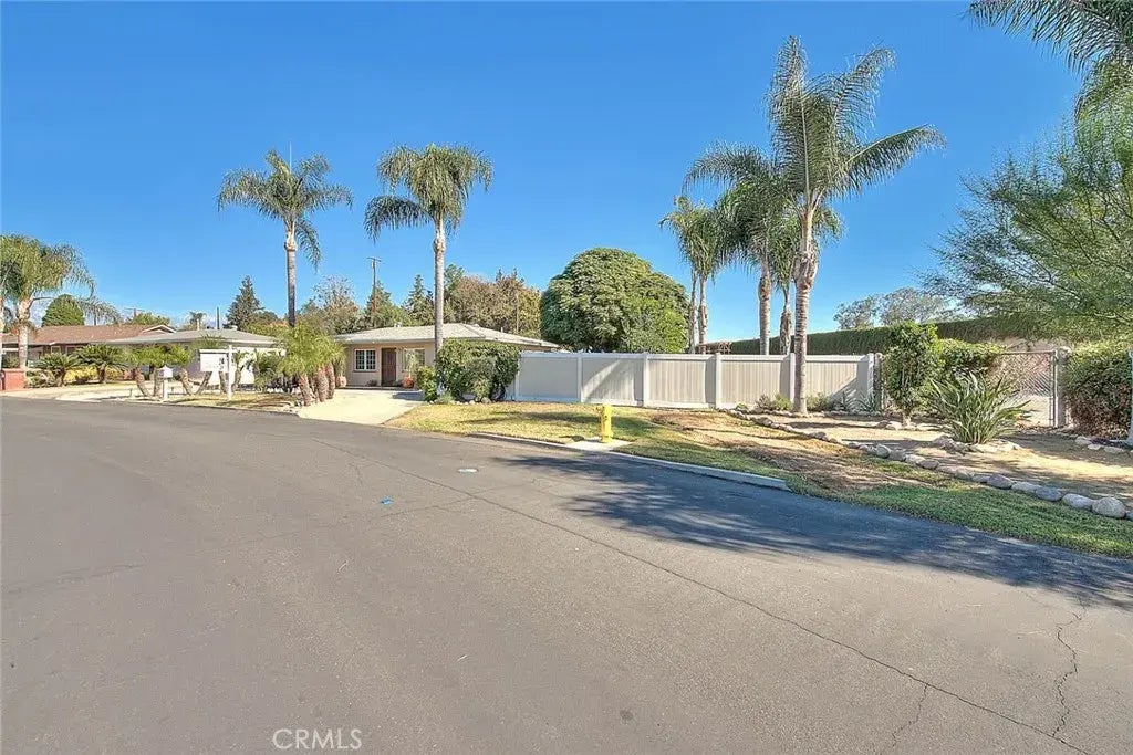 Welcome to this special home with a spacious lot. This is a wonderful, manicured property inside and out. 3 bedrooms and 2 bathrooms with appx 1350 sf. From the beautifully kept exterior, the inside is just as nice. Step through the custom front door to a tiled foyer which extends through the living spaces. The family room is open to the remodeled kitchen. The electric fireplace and entertainment cabinet will stay. The gorgeous kitchen boasts granite counter tops and tiled backsplash. A gas range, built in microwave, dishwasher, and refrigerator. Smooth textured ceilings, dual pane windows, paneled interior doors, and wood shutters makes for comfortable living. All bedrooms have ceiling fans and smooth ceilings. The primary bathroom and hallway bathroom are remodeled, and they sparkle! The oversized laundry room has French doors to the back yard covered patio. This room could easily be a 4th bedroom, simply add a closet and mini split for hvac to this room. Central air and heat and dual pane windows will keep you comfortable. The back yard is private with no neighbors to the south. The oversized detached garage has an extra wide door and can fit 3 cars, it measures 24 feet wide and 23 feet deep, 552 sf.. An electric gate opens to the back yard and ample driveway. Enjoy peaceful outdoor living with the hammock, shade trees, and gorgeous lawn and foliage. This is a wonderful neighborhood on the West side of Chino. Chino is a multiple award winner of the Top 100 cities in America for Young Families. Award winning schools and nearby shopping. Easy freeway access to the 60 and 7