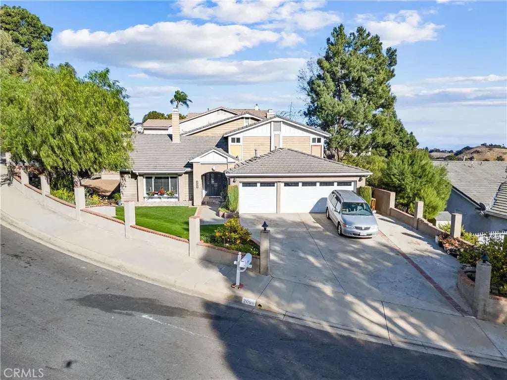 Welcome to your dream home in the highly sought-after Summit Ranch neighborhood of Chino Hills! Perfectly situated on a prime **corner lot** with no neighbors in front or beside, this 4-bedroom, 3-bathroom home offers privacy, serene views, and a thoughtful layout designed for convenience and comfort. Spanning 2,526 sq. ft. on an expansive 10,800 sq. ft. lot, this home is ideal for entertaining and everyday living. The front yard features brand-new artificial turf, providing a lush, green appearance with low maintenance and eco-friendly benefitsperfect for busy homeowners. The owner removed the old, undesirable landscape of the side and backyard and prepared the ground that is ready for you to design! There is a highly desirable **downstairs bedroom and bathroom**, the bedroom featuring slate floors, a built-in home office, and a hidden queen-sized wall bed. Beautiful French doors provide direct access to the backyard or driveway, making it an ideal space for guests, a private office, or multigenerational living. The formal living and dining room and a cozy conversation pit featuring a two-sided gas fireplace add charm and functionality. The kitchen boasts ample storage, a charming bay window, and views of the canyon hills ideal for family gatherings or quiet sunrise mornings. Upstairs, the primary bedroom suite is a true retreat boasting vaulted ceilings, crown molding, a ceiling fan, and stunning nature views. French doors open to a private balcony offering breathtaking vistas of the surrounding mountains and hills, perfect for enjoying morning coffee, afternoon naps, or