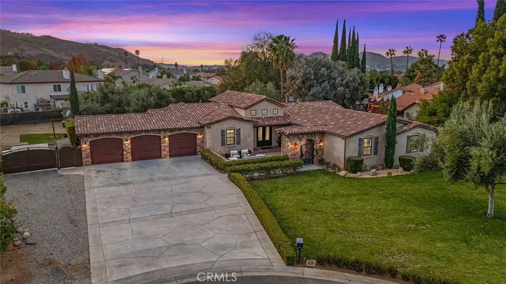 Live the Mediterranean dream in this exquisite single-story estate, tucked away on a tranquil cul-de-sac! ?? Enter through a gated courtyard and custom double doors into a world of elegance, where every detail impresses. The view of the sparkling pool, spa, and lush landscaping welcomes your home. The expansive chef's kitchen features leathered quartz countertops, perfect for culinary creations and gatherings. The luxurious primary suite boasts upgraded flooring, a spa-like bathroom, an oversized walk-in closet, and sliding doors leading to the serene patio. A flexible floor plan includes a secondary mini suite with its own bathroom, a separate wing with two bedrooms and a family room, a formal dining area, a great room, and an executive office or potential 5th bedroom. Experience Mediterranean luxury with over $250,000 in upgrades in this stunning single-story estate, with a three-car garage, gated RV parking, and over half an acre of spacepossibly zoned for horsesthis home is as functional as it is stunning. Dog lovers rejoice with a dedicated dog run, kennels, and a dog wash station. The outdoor oasis includes a covered patio, outdoor fireplace, firepit, and sparkling pool/spa, creating the ultimate entertainer's paradise. Conveniently located near shopping and commuter routes, this estate offers a lifestyle of luxury and comfort. Dont waitschedule your tour today and experience this masterpiece for yourself!