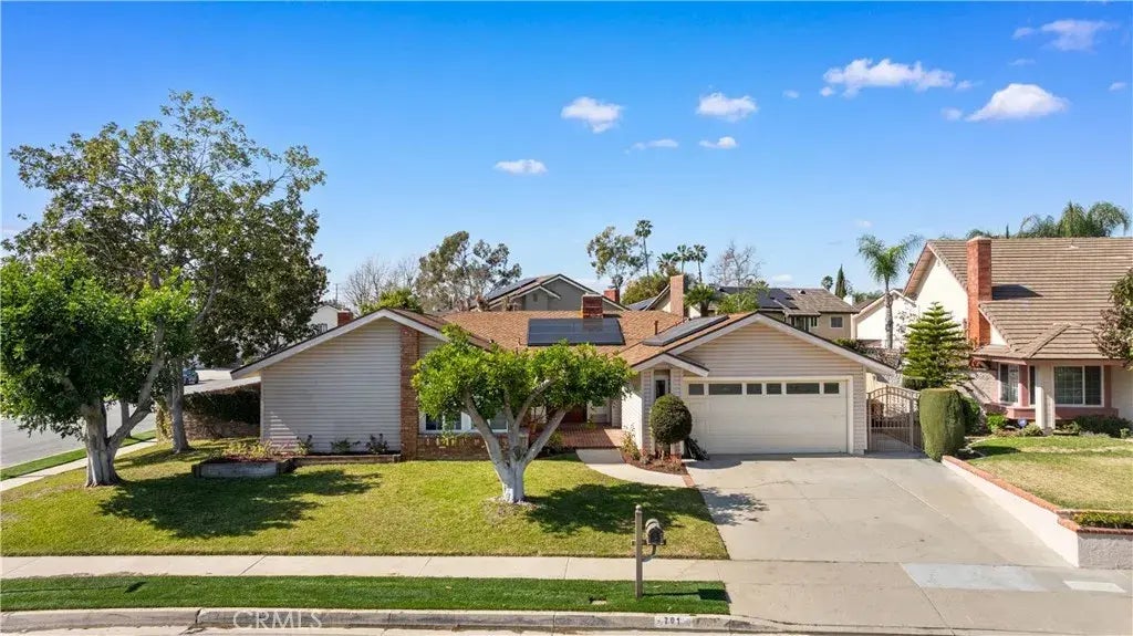 This rare single-story corner lot home is located in the highly desirable Alta Placentia community in Orange County. It features 4 bedrooms, 2.5 bathrooms, and a 2-car garage, offering 2,541 square feet of living space, big corner lot size 7,000 square feet. The double-door entry welcomes you into a spacious and bright living room with a custom-designed fireplace. The formal dining room connects the kitchen, which boasts plenty of cabinets and ample storage space. The family room features another custom-built fireplace, creating a warm and inviting space for family entertainment. All bedrooms are generously sized, and all bathrooms have been remodeled. The master bedroom showcases vaulted ceilings with wood beams, adding to its charm. The living room, kitchen, and master bedroom all have direct access to the backyard. The large, private, and peaceful backyard is surrounded by lush plants and trees. A spacious patio and new lawn provide the perfect setting for outdoor enjoyment, and there is still plenty of space for you to customize your backyard to your liking. Additional highlights include a brand-new insulation above the ceiling that keeps your home cool even during the scorching summer. The fully paid-off solar panels come with two Tesla storage batteries, offering energy efficiency and sustainability. Other features include, custom two-tone paint, newer double-pane windows and sliding doors, crown moldings, recessed lights, newer central A/C and heating system, newer water heater. This beautiful home is conveniently located near schools, shopping centers, and provides