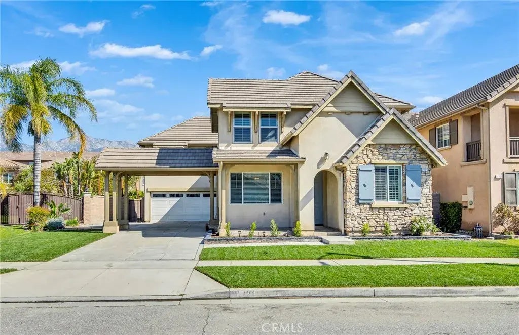 Located in the prestigious Rancho Cucamonga neighborhood, this beautifully remodeled two-story home offers 3,122 square feet of living space with 5 bedrooms and 3 bathrooms on a spacious 6,970-square-foot lot. The property features an attached two-car garage and a charming covered front porch. Inside, sophisticated design and luxury vinyl plank (LVP) flooring lead to a striking entryway with a dramatic two-story ceiling and a marble accent wall. Adjacent to the entryway is the formal living room, seamlessly connecting to the open-concept great roomperfect for entertaining. The remodeled chefs kitchen is a standout, featuring a 6-burner Wolf gas range, stone countertops with a beveled edge, an elegant stone backsplash extending to the ceiling, and high-end appliances, including a Viking refrigerator and dishwasher, all with stainless steel finishes. The adjoining family room is spacious enough for a large-screen TV and features a gas fireplace with matching accent designs that flow throughout the home. The flexible fifth bedroom is conveniently located downstairs, ideal as a guest room or home office, with an adjacent bathroom and a nearby hall closet. Upstairs, four additional bedrooms each showcase custom accent walls and remodeled designer bathrooms. Plus, a large loft. The luxurious primary suite serves as a private retreat, featuring a spa-inspired bathroom, stylish accent walls, and ample closet space. Located in an award-winning school district and close to world-class shopping, Ontario International Airport, and major freeways (210 & 10), this home offers both conven