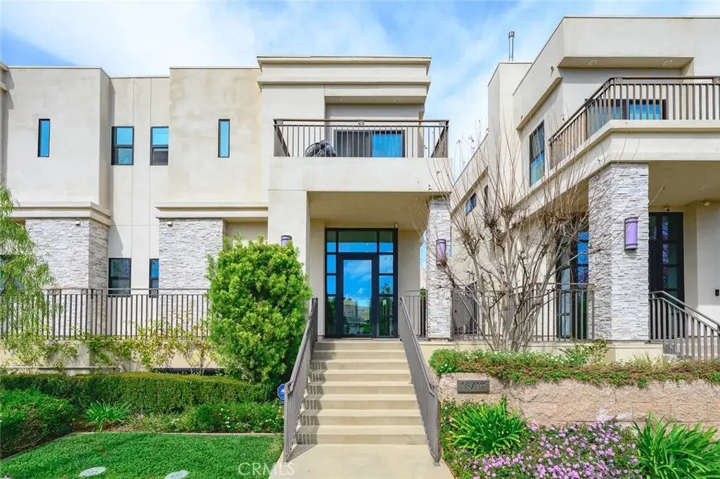 Discover a stunning blend of greenery and classic charm in this exceptional tri-level townhome, located south of the boulevard in the highly sought-after Villas at the Village Walk. This beautifully designed three-bedroom, two-and-a-half-bath residence offers over 1,800 square feet of thoughtfully crafted living space. The open-concept floor plan is perfect for entertaining, featuring a gourmet kitchen equipped with top-of-the-line GE Monogram stainless steel appliances, elegant stone countertops, Italian glass-faced designer cabinetry, a mosaic glass backsplash, and dual stainless steel sinks. The expansive island, complete with a commercial-grade cooktop and overhead venting system, makes meal preparation effortless. The inviting living room showcases a cozy gas fireplace, while wide-plank laminate flooring extends throughout the home, enhancing its modern aesthetic. A striking glass wall and floating staircase lead to the upper level, where natural light pours into every room. The luxurious master suite boasts an oversized walk-in closet and a spa-like bathroom with a separate shower and soaking tub. Step onto the private balcony adjacent to the master suite and unwind with your favorite drink as you take in the sunset. The two additional bedrooms are generously sized, each offering ample closet space. Thoughtful designer details include high-end electrical and plumbing fixtures, Hunter Douglas custom fabric window treatments with automated controls, and prewiring for A/V and security systems. The rear patio is a private oasis featuring tiled flooring, synthetic turf, an