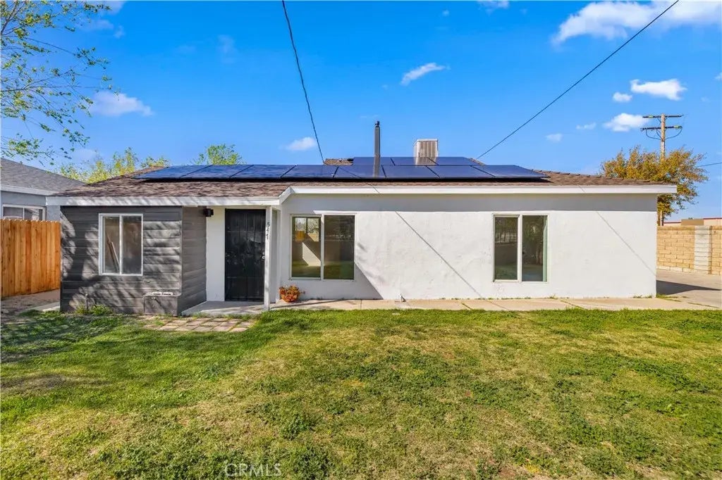 Beautifully renovated home sitting on an expansive flat lot of nearly 10,000sf with drive to the back! Light and bright with an open floor plan, this adorable home offers 3 spacious bedrooms with tons of closet space and inside laundry room. Recently renovated with the following improvements: Solar panels, windows, paint, flooring, kitchen cabinets, hardware, fixtures, and a completely new bathroom. Move-in-ready! Located feet from the Palmdale Metrolink stationideal for commuters or those who appreciate connectivity to the greater Los Angeles area! This gem won't last long and can be a developer's dream! A must-see!