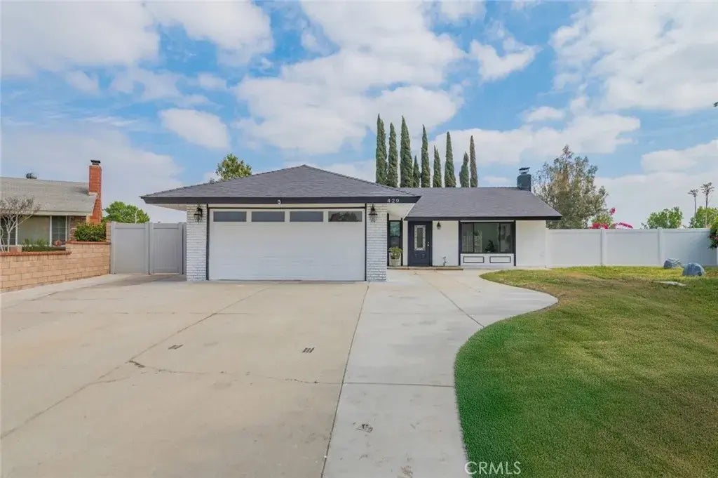Totally Remodeled! Welcome to Your Cozy Cul-de-Sac Retreat! 2 bedrooms, 1.5 bathrooms and 2 -car garage. Step through the front door into an inviting living room, open and bright, a charming brick fireplace, The new kitchen features convenient center island, quartz countertops, full backsplash, white shaker cabinets. The spacious dining area with sliding glass doors that open to the patio perfect for seamless indoor-outdoor entertaining. The large primary bedroom offers comfort and convenience, the full bathroom with new vanity, shower with glass enclosures. The second bedroom offers a generously sized closet and is near the full bathroom in the hallway. Other features include: New roof, new windows and sliding doors, new exterior and interior paint, recessed lights, crown moldings, new central A/C and heating system. The laundry area located in the attached two-car garage. A wide front driveway provides ample parking, while the super large backyard offers plenty of room to relax or entertain complete with mature fruit trees. Located in a peaceful and well-established cul-de-sac community, offering a serene suburban lifestyle with mature landscaping and a welcoming neighborhood feel. Close to supermarkets, restaurants, and with easy freeway access.