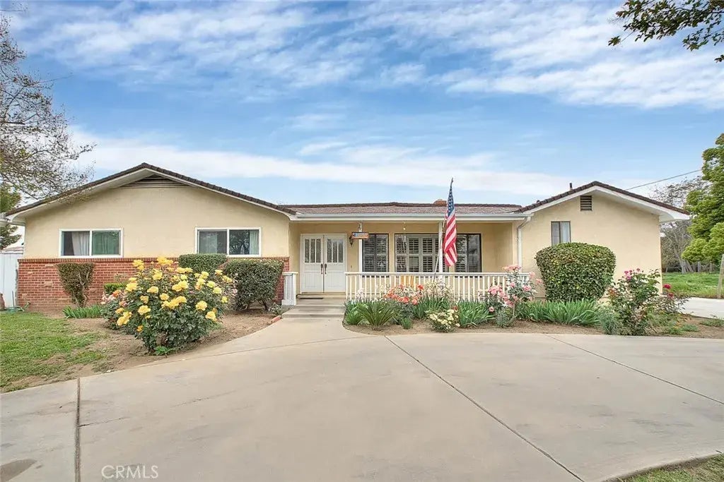 Beautiful One Story Home on an Approximately 2/3 Acre Lot in Chino! This Lovely Home Features a Double Door Entry with a Large Front Porch Area and a Circular Driveway in Front. Huge Living Room with a Wood Burning Fireplace with Built in Wood Cabinets/Shelving. Formal Dining Room and a Open Concept Kitchen with a Center Island with a 5 Burner Gas Cooktop, a Stainless Steel Overhead Vent Fan and a Sink. The Kitchen Also Features a Double Oven, Dishwasher and Upgraded Cherry Wood Cabinets and Formica Counter tops. Hardwood Flooring Throughout the Kitchen, Breakfast Nook, Entry and Three of the Bedrooms. Nice Carpeting in the Living Room & Dining Room. Four Spacious Bedrooms Including a Primary Bedroom with a Primary Bathroom with a Tub/Shower and a Vanity with Dual Sinks on one Side of the Home. The Remaining Three Bedrooms All Feature Hardwood Flooring and Ceiling Fans. The Hall Bathroom has a Remodeled Tub/Shower Enclosure with Glass Slider Door, a Dual Sink Vanity and Tile Flooring. The Guest Bathroom has a Walk-In Stall Type Shower that Has Been Recently Updated and a Newer Vanity with Sink. Indoor Laundry Room with a Sink, Built in Cabinets and Storage Cabinets. Dual Paned Windows Throughout the Home and French Doors from the Kitchen to the Rear Yard. Dual Unit Central A/C and Forced Air Heating. Two Car Detached Garage with Opener and Separate Area for an Office or Workshop Attached to the Garage. Covered Patio Area with a Ceiling Fan & Light with a Concrete Slab. Beautifullly Landscaped Front and Rear Yard with Several Flowers and Trees. Some of the Trees on the prope