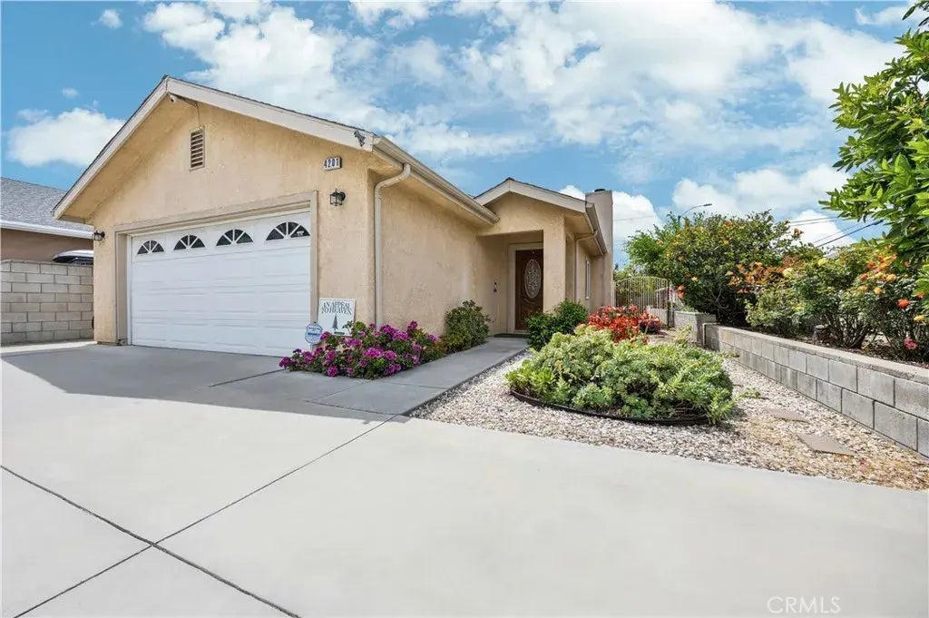 Built in 2005, this beautiful single-story home offers 3 bedrooms and 2 bathrooms, along with a two-car attached garage. Premier corner lot. A large driveway leading to the front door. Step inside to high ceilings and an open layout. The spacious living room features high ceilings, a cozy fireplace, and beautiful bamboo flooring, creating a warm and inviting space perfect for relaxing or entertaining guests. and formal dining room offers an elegant chandelier. The kitchen has been fully remodeled with custom cabinetry, stunning granite countertops, and stainless-steel appliances perfect for modern living! The large primary bedroom features a ceiling fan, a walk-in closet and have direct access to the back yard, offering both comfort and convenience. Other features include custom two-tone paint, bamboo flooring in the living room, carpet in the bedrooms, tile flooring in the bathrooms, ceiling fans, and new central A/C system to keep you comfortable year-round. The backyard offers a spacious area with a large storage shed and a Jacuzzi tub with covered patio perfect for outdoor entertaining or relaxing weekends. Conveniently located close to shopping centers and schools, this home offers the perfect blend of comfort, style, and accessibility!