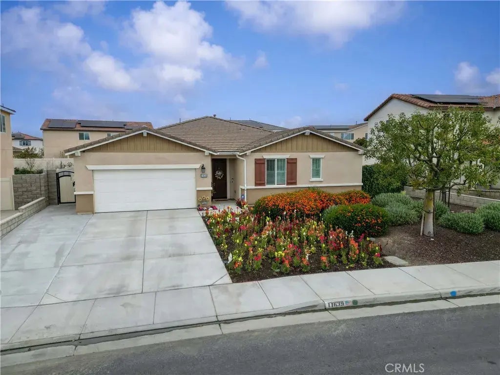 IMMACULATE SINGLE-STORY HOME with DESIGNER TOUCHES IN PRIME JURUPA VALLEY LOCATION Welcome to this beautifully appointed SINGLE-STORY home, offering over 2,400 square feet of open-concept living space, nestled on a quiet cul-de-sac in a desirable newer community of Jurupa Valleyjust east of Eastvale and minutes from the 15 Freeway. Boasting 4 SPACIOUS BEDROOMS and 2.5 baths, this home has been thoughtfully designed for both comfort and functionality. As you step inside, youre greeted by soaring ceilings and a seamless flow into the EXPANSIVE GREAT ROOMperfect for entertaining or relaxing with loved ones. The light-filled kitchen features crisp white cabinetry, gleaming quartz countertops, stainless steel appliances, a WALK-IN PANTRY, and an oversized island with pendant lighting, ideal for casual meals or entertaining guests. The generous great room easily accommodates both formal dining and comfortable living, enhanced by custom draperies, large windows, and a ceiling fan for added comfort. Step through the sliding glass door to a beautifully designed backyard with both covered and open-slat patiosideal for year-round outdoor living and gatherings. The PRIMARY SUITE is thoughtfully positioned for privacy and features its own set of custom draperies, a large walk-in closet, and a SPA-LIKE ENSUITE with dual vanities, a soaking tub, and separate shower. Three additional bedroomseach with PLANTATION SHUTTERS, ceiling fans, and walk-in closetsoffer plenty of space for family, guests, or a home office. A large laundry room with built-in storage provides practical convenience, wh