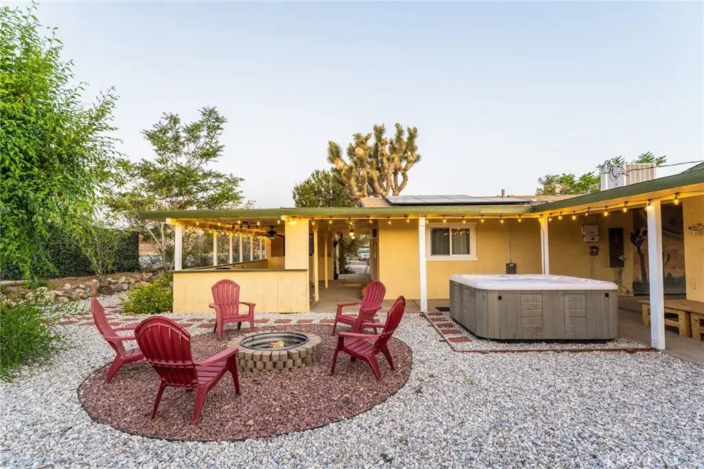 Fully remodeled and move-in ready, FULLY FURNISHED this charming 2-bedroom, 1-bath home in Yucca Valley offers a perfect blend of modern comfort and desert serenity all just 10 minutes from the entrance to Joshua Tree National Park. Inside, youll find a bright and stylish interior with updated flooring, a remodeled kitchen with contemporary finishes, and a refreshed bathroom designed with care and attention to detail. The open floor plan and natural light create a warm, welcoming atmosphere throughout. Enjoy the benefits of a fully paid solar system, providing energy efficiency and cost savings year-round. Home also has 240v outlet on the side of the house for EV fast charging, RV electric & water hookup. Step outside to your private backyard retreat, featuring a spa ideal for relaxing after a day of hiking or stargazing in the high desert skies. Set on a spacious lot in a quiet, well-established neighborhood, this home is close to shopping, dining, and outdoor adventure. Whether youre looking for a full-time residence, weekend getaway, or a proven short-term rental opportunity, this remodeled desert gem has it all.